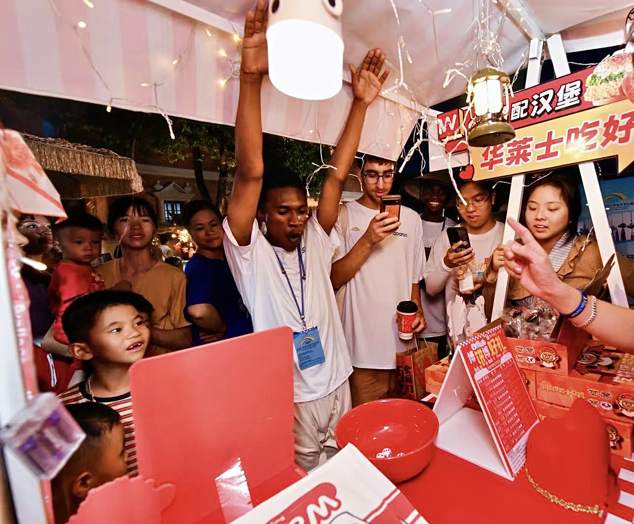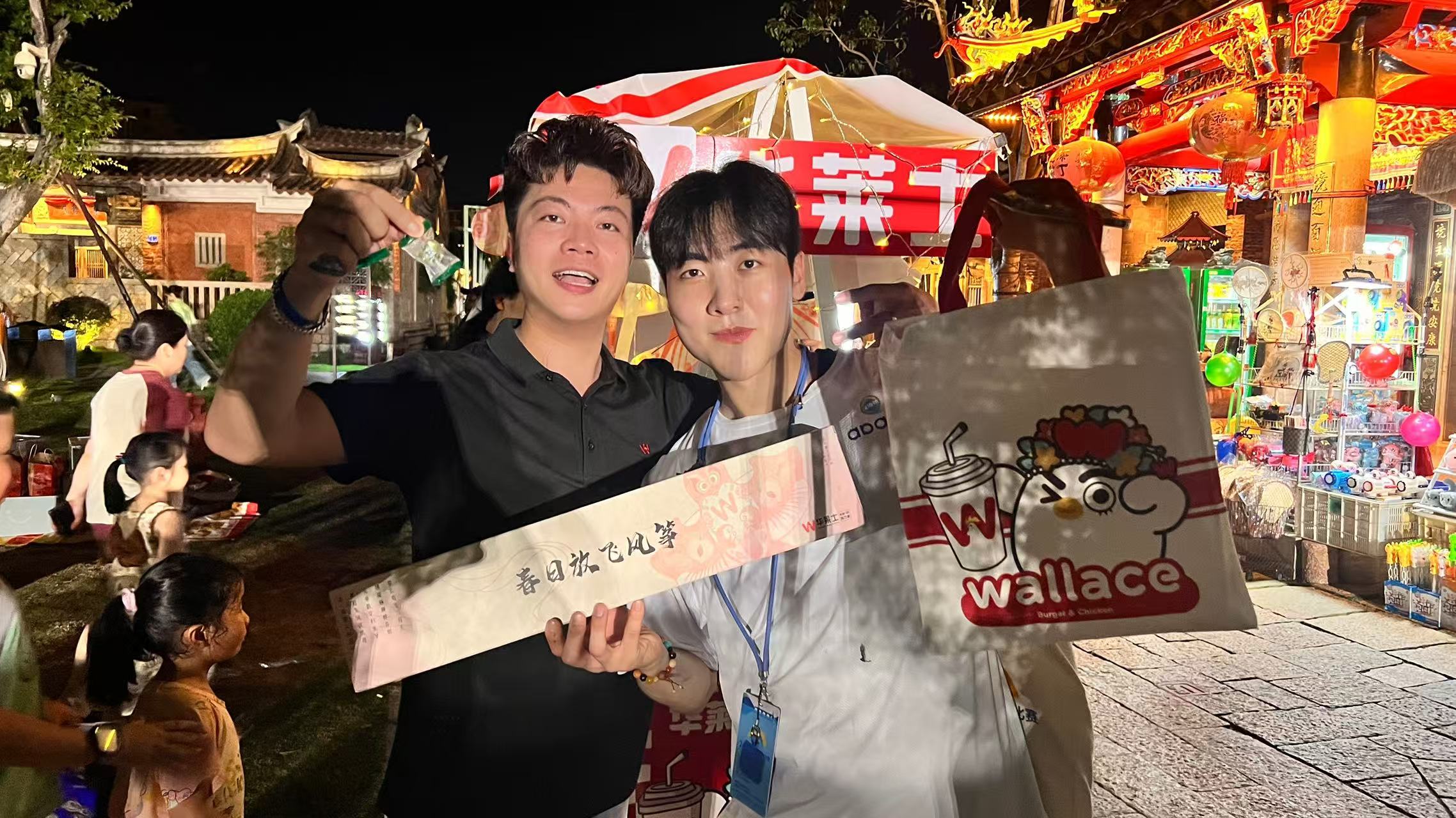 活动现场充满青春活力,华莱士团队精心打造了非遗活动互动模块,巧妙地融入中华传统文化元素,让异国青年在欢乐中感受传统文化的魅力。[闽南中秋博饼]奏响活动序曲,小白鸡皮影戏勾勒千年指尖传奇,川剧脸谱引发观众阵阵喝彩,特制小白鸡风筝在空中划出文化的轨迹。这些非物质文化遗产体验项目,与现代餐饮创新形成了奇妙的融合。