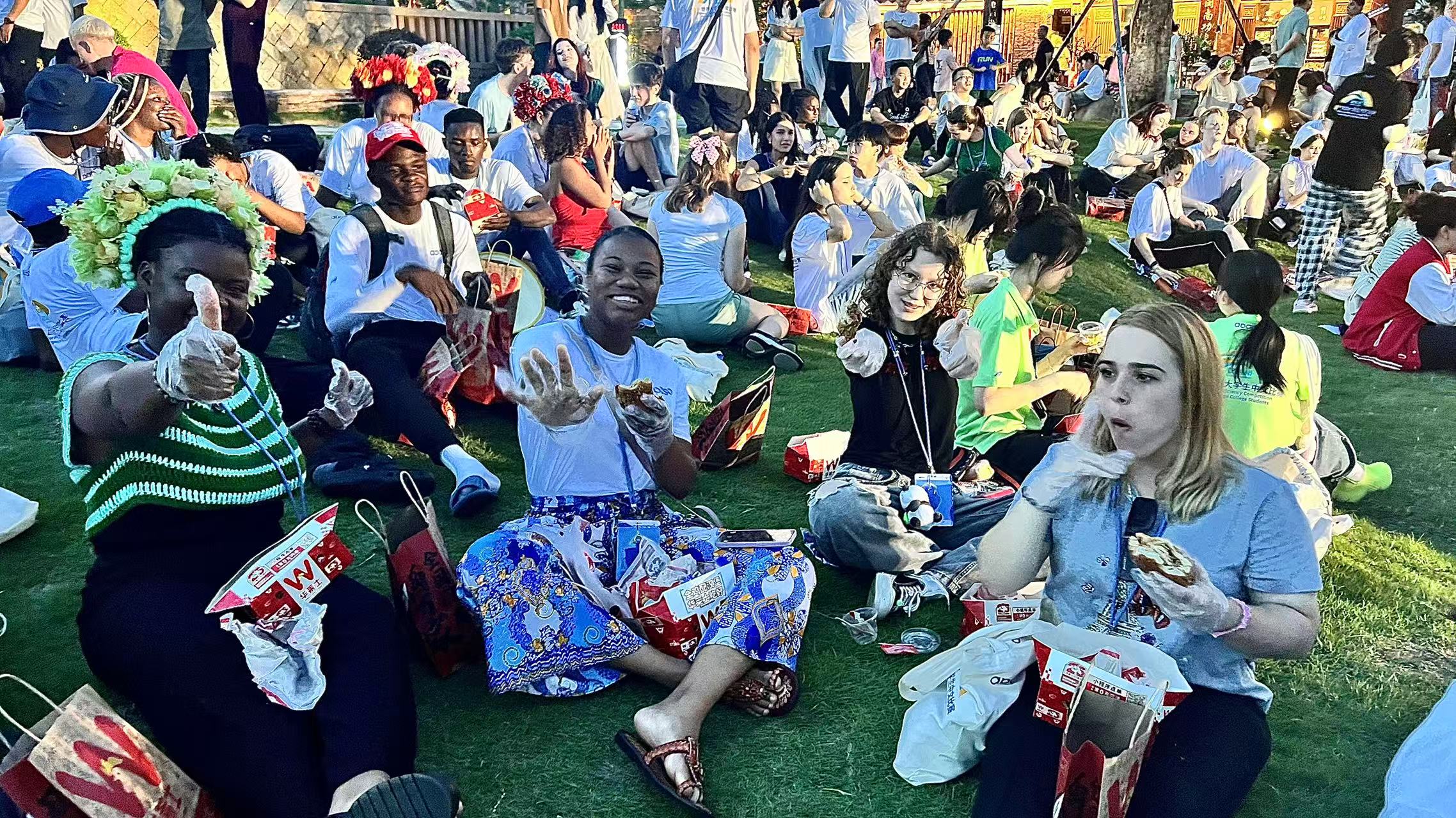 一场别开生面的“中国汉堡”邂逅,让异国青年通过熟悉的食物形态,为他们打开味蕾的第一道“交流密码”。使他们倍感亲切的汉堡虽来源于西方,但中国的汉堡也令他们赞不绝口。一位来自韩国的选手满脸兴奋地说:“这已经是我今天吃的第四顿啦!体验简直太棒了!I love Wallace。”几位非洲的选手也纷纷点头赞同,更是大声呼喊出对华莱士满满的热爱之情。